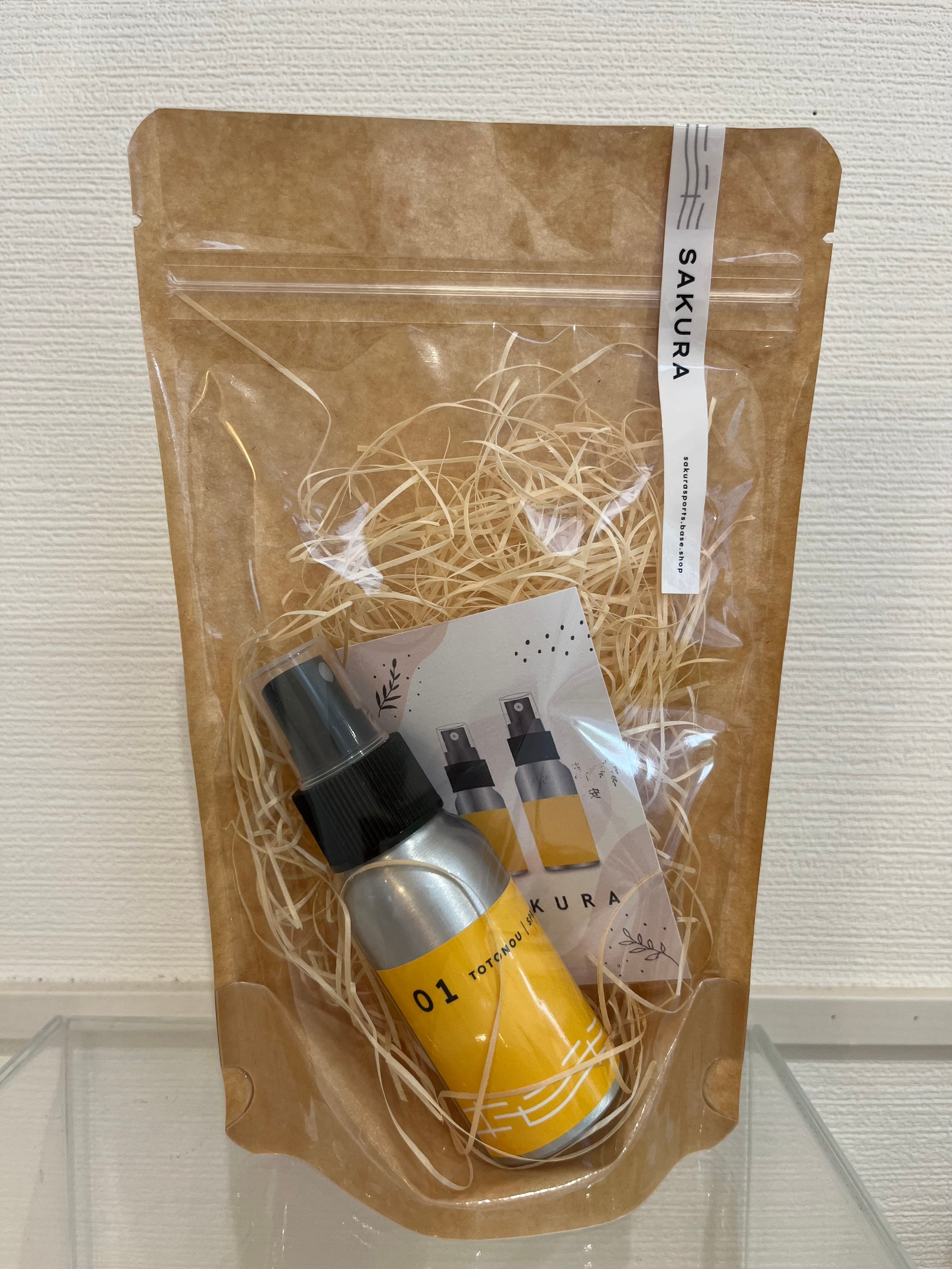 TOTONOUスプレー、NAGOMIスプレー、さくらスポーツアロママッサージシリーズ3種類の中から1本〜2本入のラッピングをいたします。